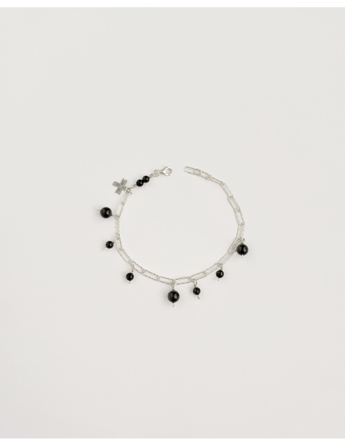 Pulsera Azabache natural, realizada artesanalmente con plata de ley 925 con azabache. La pulsera tiene un alargador de 6 cm para que se ajuste perfectamente a cualquier muñeca.